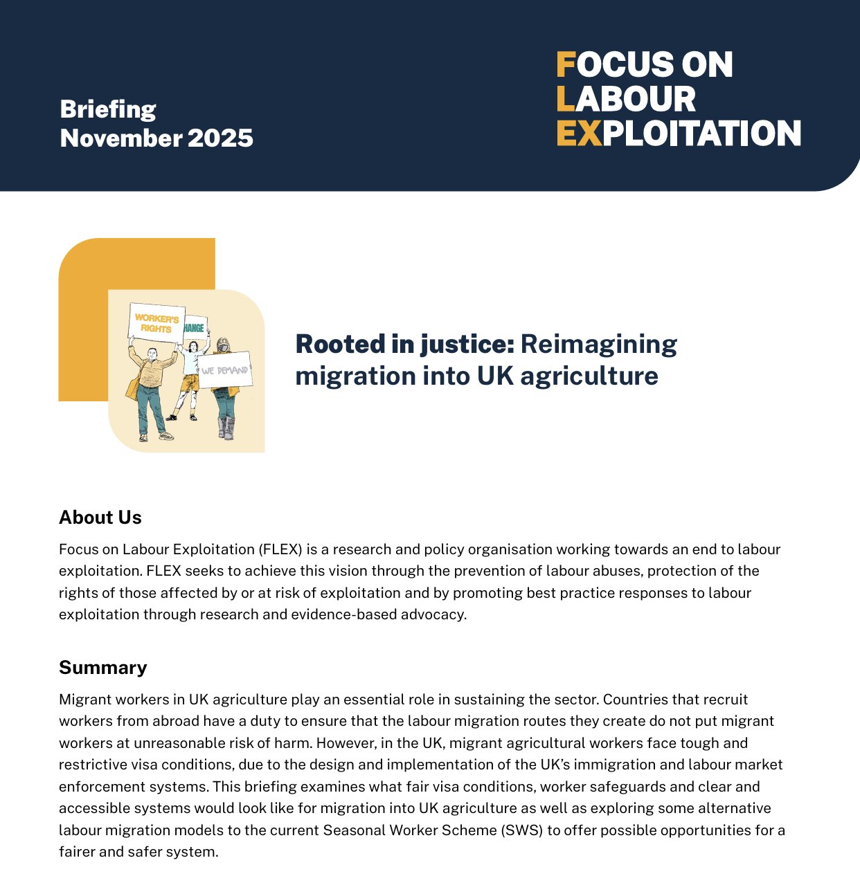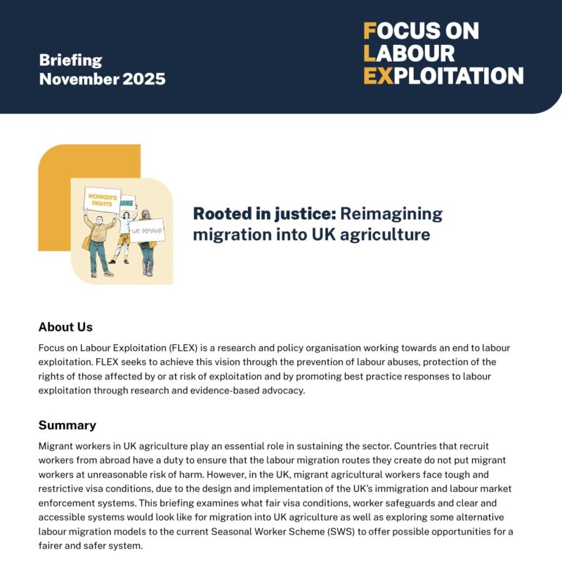 Using FLEX’s Blueprint for Safer and Fairer Migration, our latest briefing Rooted in justice: Reimagining migration into UK agriculture proposes overhauling the way that the Seasonal Worker Scheme visa is structured, and what essential components must be included in its replacement.