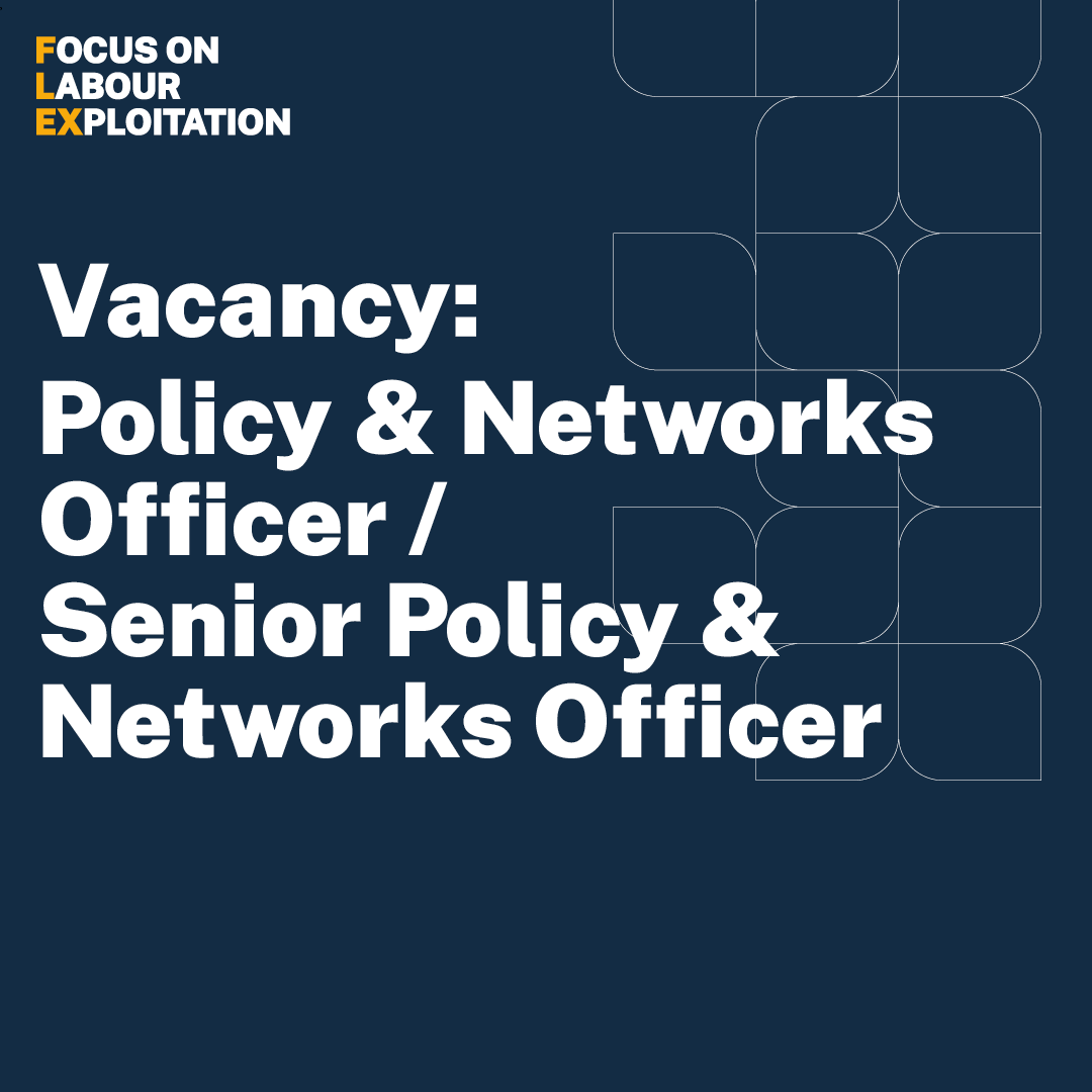 FLEX is currently recruiting for a passionate advocate with a good understanding of the UK political system, of labour abuse and/or exploitation and human trafficking in the UK, and demonstrable experience of coalition working and building relationships with key stakeholders working in the anti-trafficking, employment rights, and/or immigration sectors. This recruitment comes at an exciting and challenging time for our work at the intersection of employment rights and immigration policy. This role will inform and support our work to influence and improve law, policy and practice affecting worker in high-risk sectors in the UK.